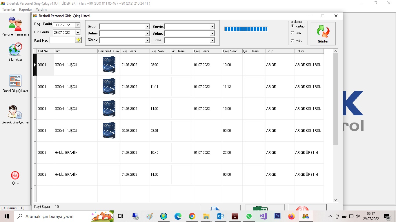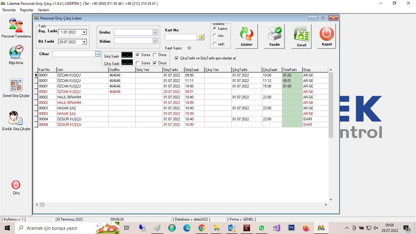 MYSQL tabanlı profesyonel giriş çıkış takip yazılımı.